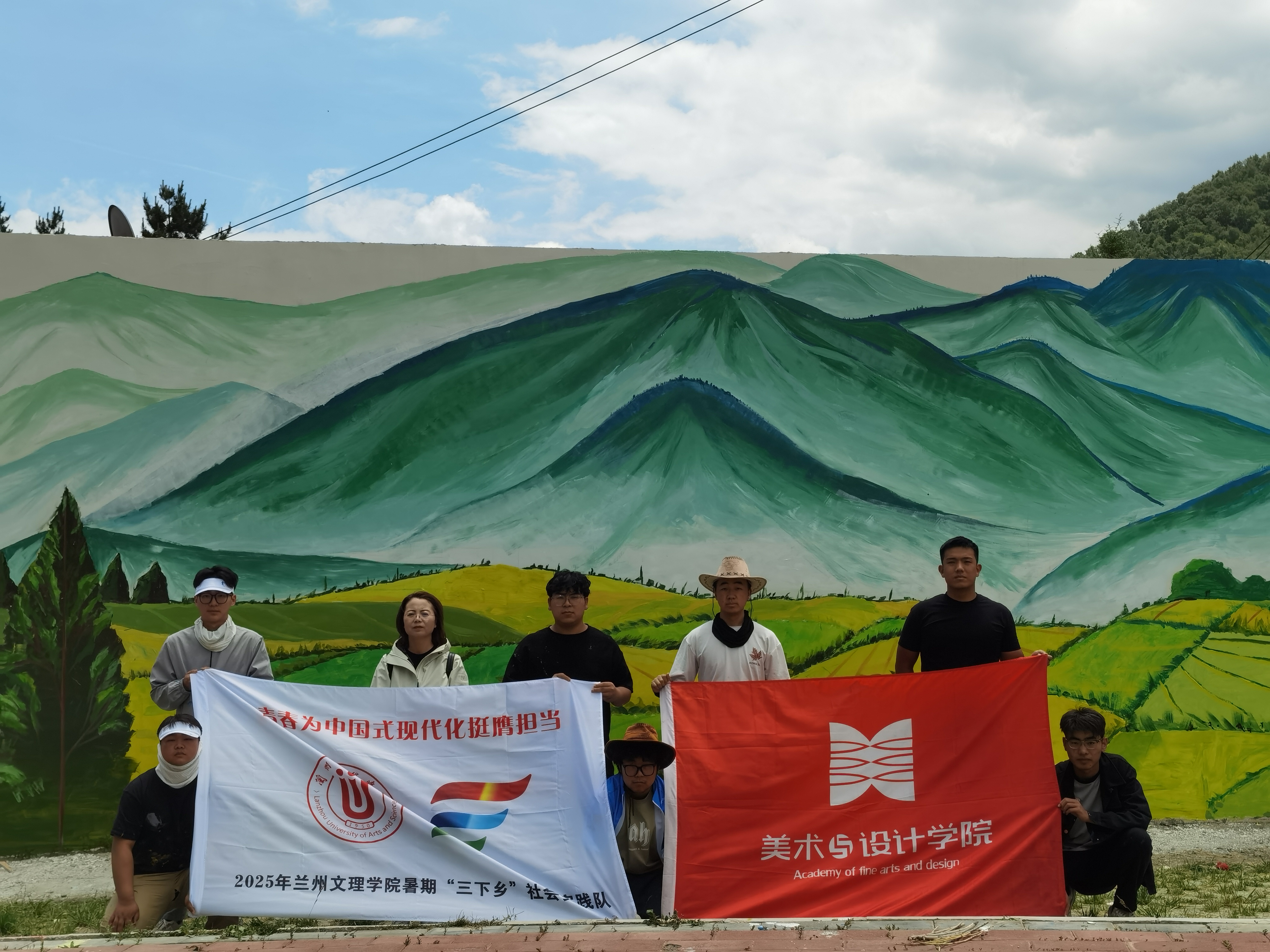 7月1日至3日,十大买球的正规网站11名大学生,在“心海导航”辅导员名师工作室负责人、团学办主任唐艳丽老师带领下,来到榆中县马坡乡哈班岔村开展乡村墙体彩绘实践活动。新绘的墙体构筑成一道靓丽的“风景线”,一幅幅灵动的图画沿路徐徐展开,成为提升乡村文化内涵的新亮点,同学们用“艺术墙绘”绘织乡村振兴美丽新画卷,赢得当地村民高度赞赏。