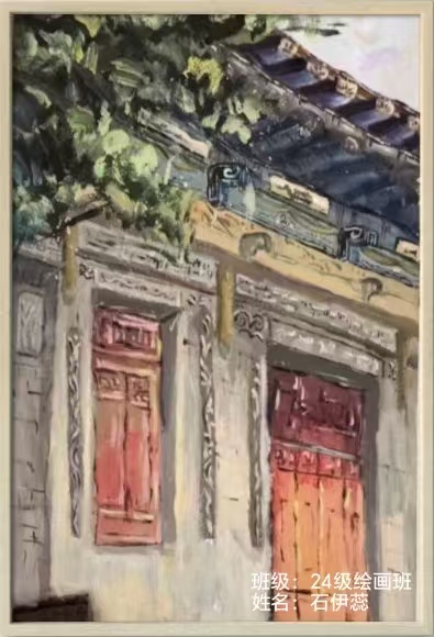 (24级绘画班石伊蕊作品——《绿荫下的白塔一角》)