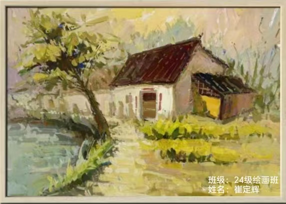 (22级绘画班王柏云作品——《路口的一栋人家》)