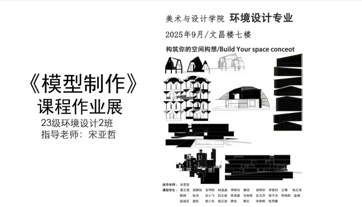 2025年9月23日,十大买球的正规网站2023级环境设计专业2班的《模型制作》课程作业在文昌楼七楼电子大屏顺利展出本次展览共呈现6组学生作品。