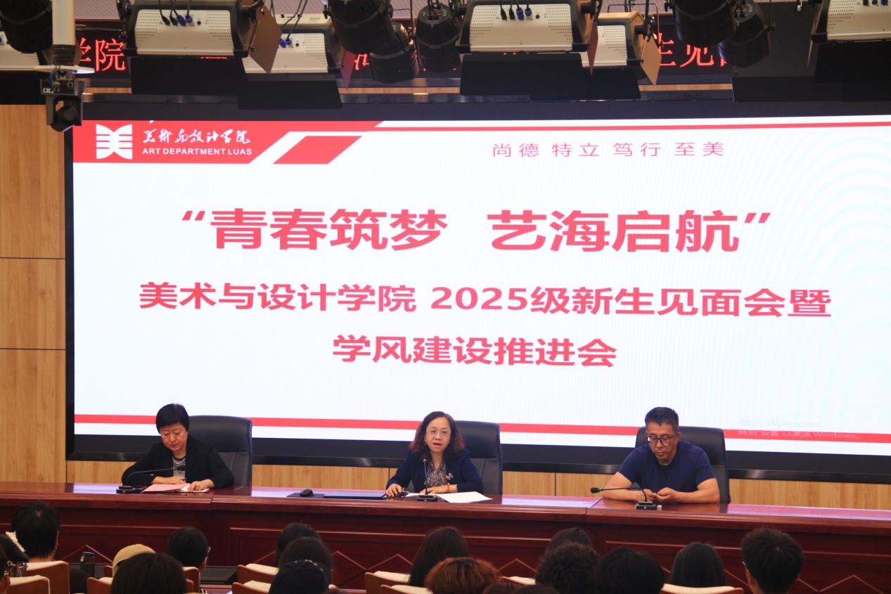 2025级绘画专业班主任陈洪文老师、2023级戏剧影视美术设计班赵彦驰同学、2025级环境设计1班王雨情同学分别代表教师、在校生和新生发言。陈洪文老师立足于专业视角,从自身经历出发,鼓励同学们在大学四年中不仅要学好专业,更要主动“设计”自我、“设计”未来,成为有理想、敢担当、能吃苦、肯奋斗的新时代好青年。赵彦驰同学分享了自己的大学经历和学习感悟,建议大家要主动探索自己的可能性,实现真正的全面成长。王雨情同学也代表新生表达了对大学生活的美好憧憬,以及勇于攀登、锤炼专业,在生活与学习中实现自我价值的坚定信念。