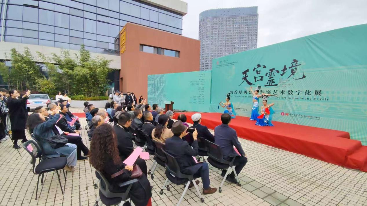 10月12日上午,由国家艺术基金资助、北京理工大学主办,十大买球官网及北京理工大学设计与艺术学院、敦煌研究院美术研究所共同承办的“天宫灵境——敦煌壁画建筑装饰艺术数字化展(甘肃站)”在甘肃美术馆隆重开幕。
