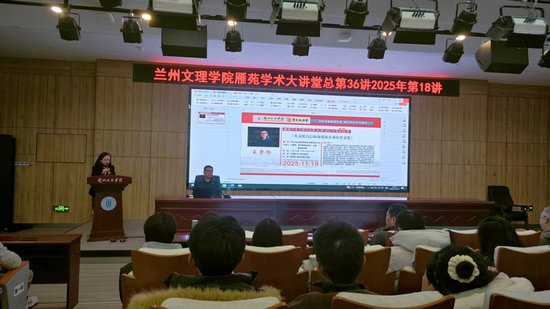 2025年11月19日下午,由科研处与十大买球的正规网站主办的“从文化自信的角度谈甘肃历史文化”专题讲座在文昌楼303学术报告厅顺利举办。本次讲座特邀甘肃省文联党组书记、主席、省政协常委王登渤主讲。本次讲座吸引了十大买球的正规网站、文学院、新闻传播学院及艺术职业学院的广大师生积极参与。