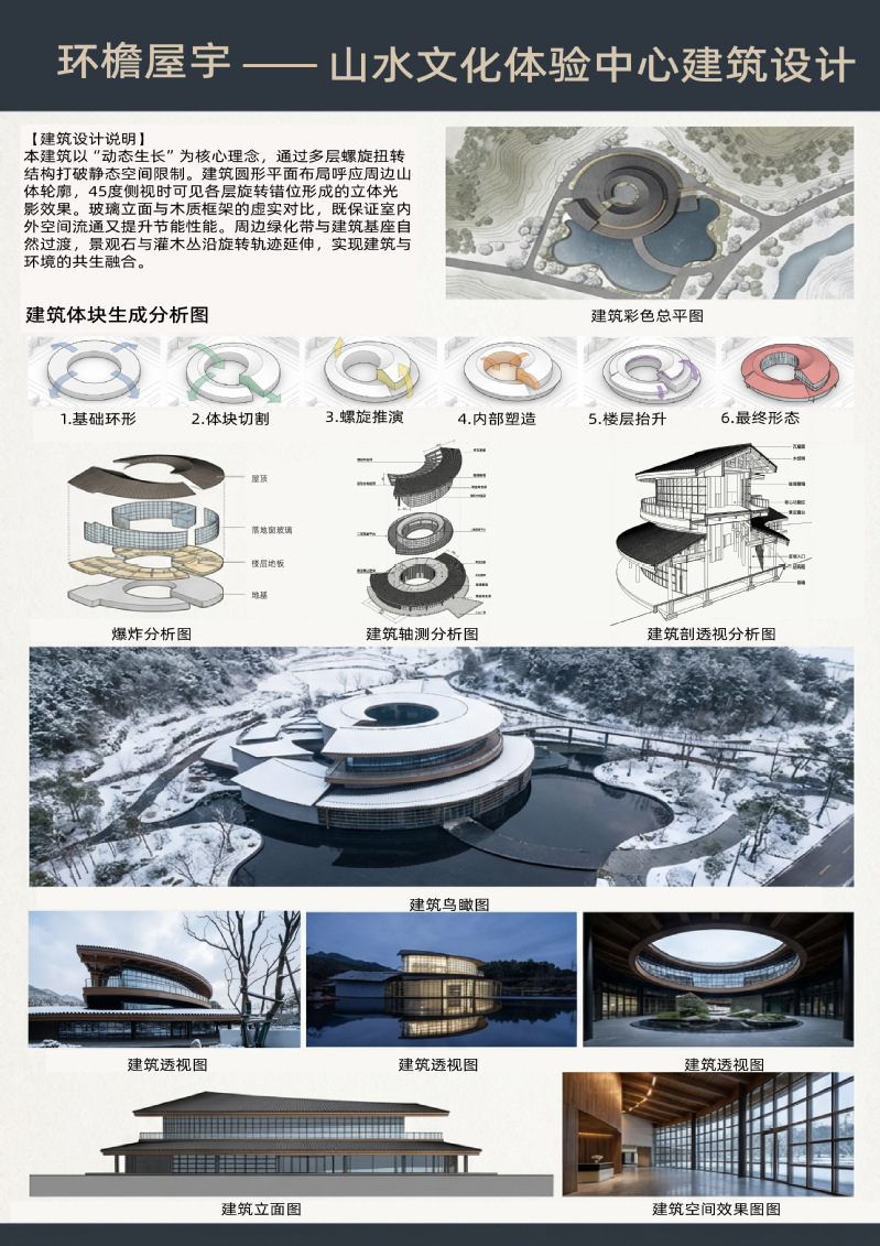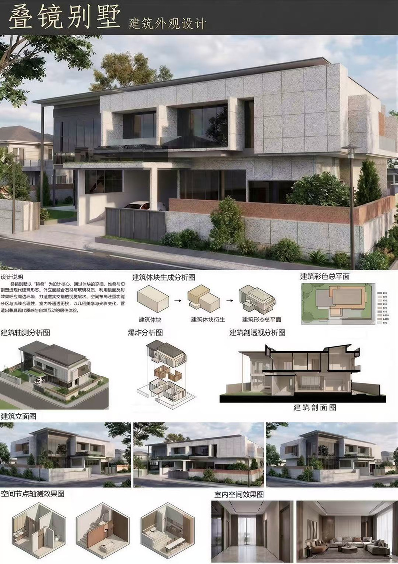 在课程中,主动将生成式AI、智能渲染、参数化分析等技术融入全流程,引导学生以AI为创意助手,快速完成概念草图生成、场地数据分析、效果可视化与方案迭代优化,有效缩短设计周期、提升表达精度。学生借助AI工具突破传统手绘与建模的效率瓶颈,在有限课时内完成多方案比选与细节深化,实现从“经验设计”向“数据驱动+创意共创”的转变。这一模式既夯实了学生的专业基本功,又培养了智能时代必备的数智素养与创新思维。